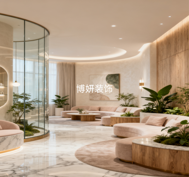 当都市的快节奏让人喘不过气,Dleanice 以自然系美学为笔,在繁华深处勾勒出一方疗愈秘境。步入空间,柔暖的裸粉色与原木纹理交织,如晨光轻吻肌肤。大理石地面的清透质感,与弧形玻璃绿植区的生机盎然碰撞,将自然的呼吸感揉进每一处细节。休息区的曲线沙发似云朵舒展,搭配艺术感挂画与错落绿植,让等候时光也成了一场美学漫游。