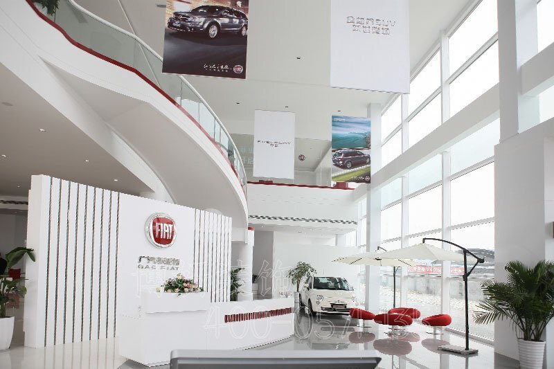 本案例为安徽菲亚特4S店装修设计案例,以人为本,大气简约,纯白色为色彩基底,加上logo的红色作为点缀,将菲亚特的品牌特征清晰的展示了出来。